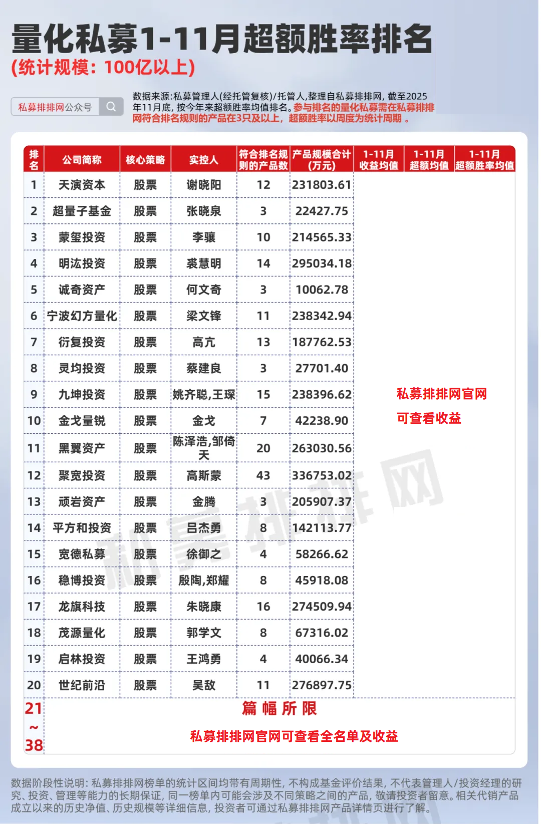 百亿量化:天演资本、超量子基金、蒙玺投资位居前三!