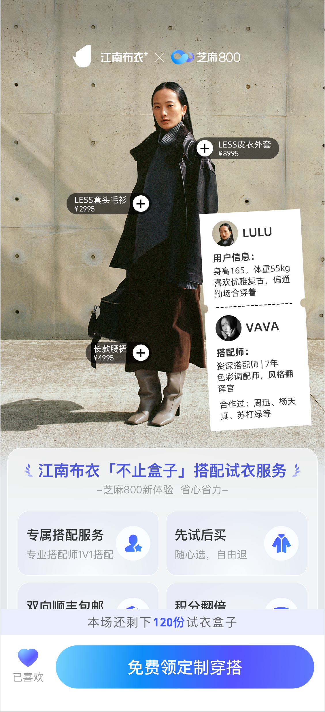 为让单次免费权益更具质感,江南布衣全域服务体系全程护航:线上端提供 5 天免费试穿期,试穿不满意可一键退回,来回运费全免,全程搭配师专属1v1服务,为您解答穿搭疑问;同时,芝麻 800 + 用户完成单次服务后,还可额外解锁江南布衣会员身份,同享品牌双倍积分(可兑换礼品、护理、线下活动名额等等),让 “单次体验” 延伸出长期价值。