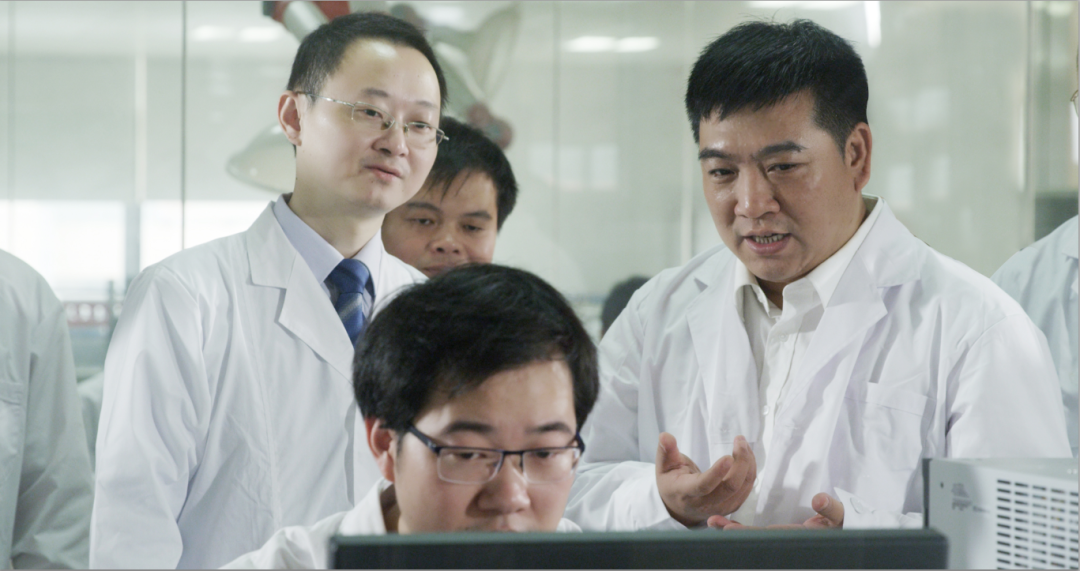 ▲董事长陈庆堂先生在研发中心指导工作