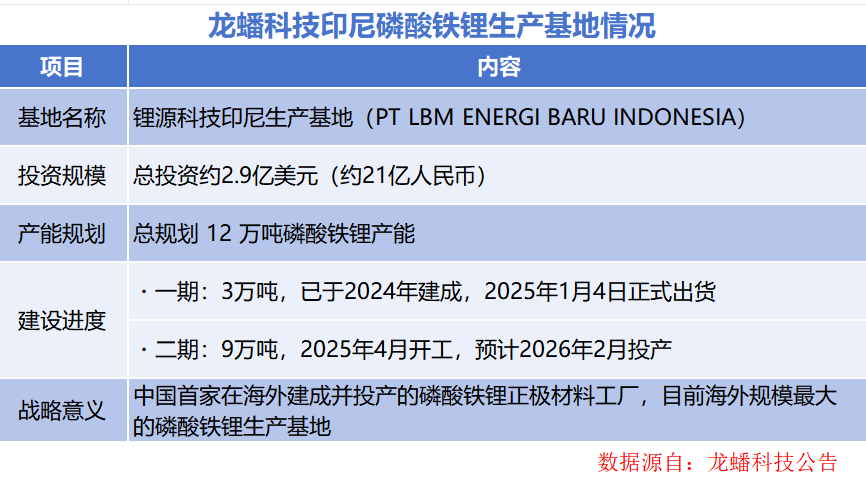 凭借敏锐的市场嗅觉,龙蟠科技成为国内最早布局海外产能的磷酸铁锂企业。并且,这份先发优势,正转化为看得见的产能壁垒。