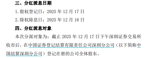 公告称,公司于2025年6月20日召开2024年度股东大会,审议通过《关于提请股东大会授权董事会制定2025年分红方案的议案》,同意授权董事会论证、制定并实施2025年中期分红方案。公司召开第七届董事会2025年第6次会议,审议通过《2025年中期利润分配方案》,同意以公司现有总股本38.82亿股为基数,向全体股东每10股派现金25.78元(含税),合计分配100.07亿元(含税),不送红股,不以公积金转增股本。股权登记日为2025年12月17日,除权除息日为2025年12月18日。