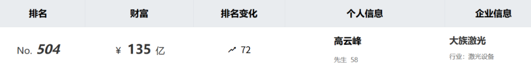 作为“大族系”实控人,高云峰手握两家上市公司,身家已达135亿元。而现在,哪怕已近花甲之年,仍敢在AI浪潮下押注全球高端设备市场,向自己的第三个IPO发起冲击。