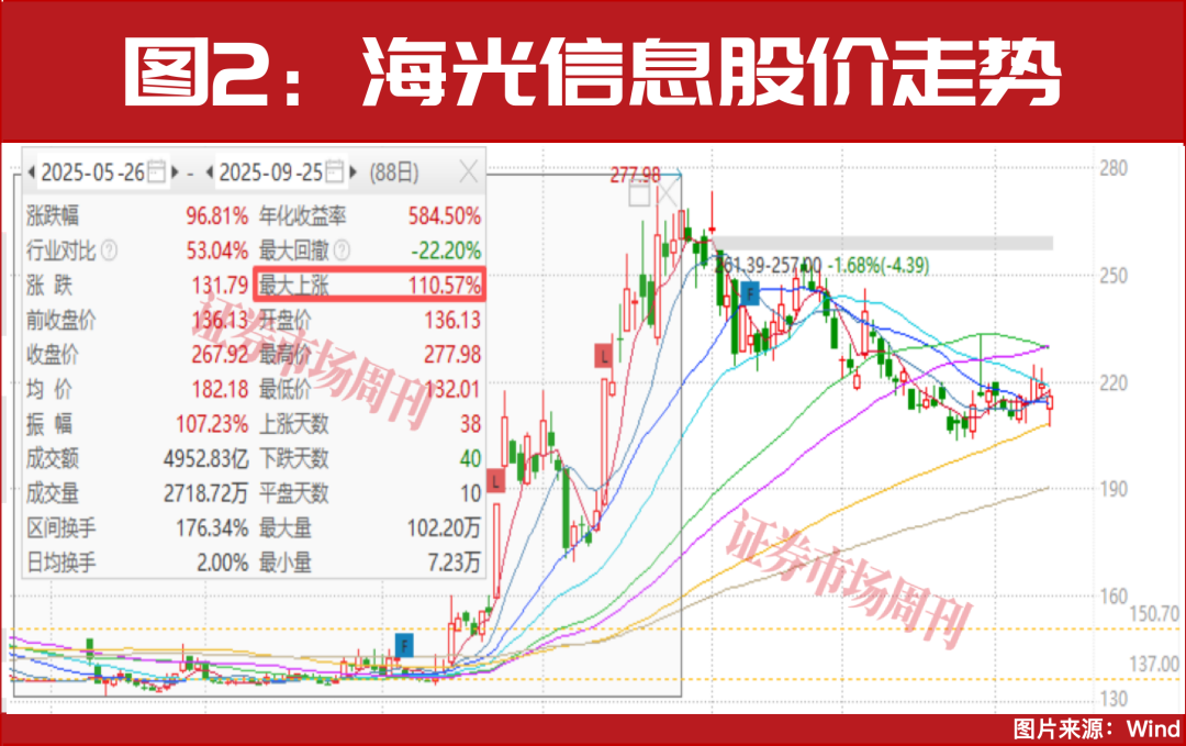 据悉,自今年5月26日公布重组计划至今,中科曙光和海光信息均迎来向上行情,最高涨幅均已翻倍,迄今为止仍均有50%以上的涨幅(见图1、图2),当下其短期的调整或将持续,但大概率不会达到5月26日的上涨起点,作为算力链的核心龙头,中长期仍有望重回上升通道。