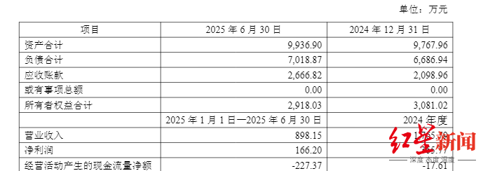 业绩方面,该公司正持续盈利:2024年实现营业收入1765.79万元,净利润365.77万元;2025年上半年,其营业收入为898.15万元,净利润为166.20万元。
