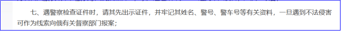 他们甚至专门提示大家,遇到警察检查证件,一定要记清楚他的警号。