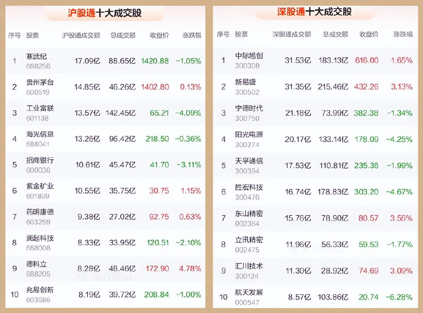 5、北向资金共成交2044.14亿元,占两市总成交额的11.49%——