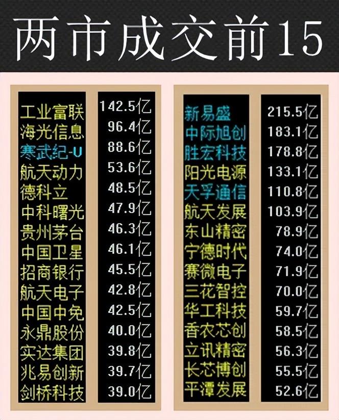 3、两市成交前15名——