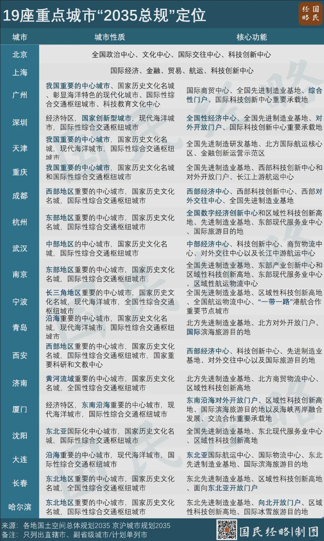 基本上,两座城市是将此前国土空间总体规划中所确立的区域性定位升级到全国性,且均涵盖“五个中心”,属于多维度的全面提升,谋求升级的雄心可见一斑。
