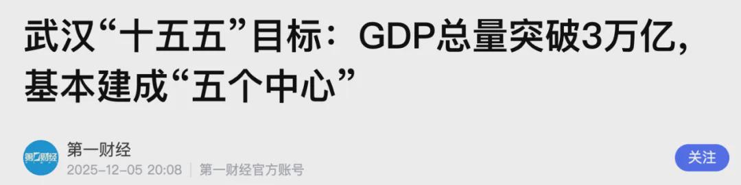 武汉是到2030年,全市地区生产总值突破3万亿元。