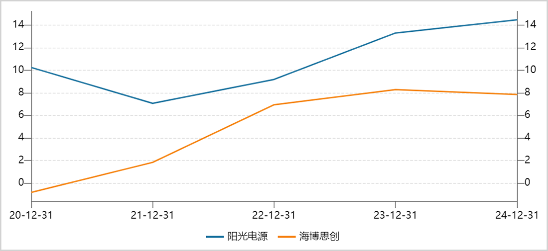 ▲阳光电源VS海博思创净利率走势图,来源:Wind