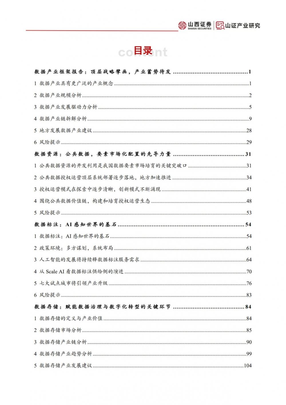 基于上述考量,山西证券研究所产业研究团队在聚焦数据和算力两大新型生产要素的基础上,进一步聚焦研究重点,以数据产业全链条研究为核心,形成了2025年度《数字经济研究报告合集》。本年度报告合集构建了“总-分-特”完整框架:以数据产业框架性报告为总领,产业链细分报告聚焦数据资源、基础设施、数据标注、数据存储、数据应用核心环节,既全面呈现全国数据产业发展现状、趋势机遇,也融入了对山西数据产业发展的针对性思考,以期对区域产业布局提供参考。