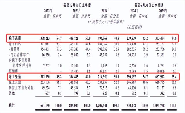 渠道方面,林清轩早期以线下门店起家,近年来线上渠道增长迅猛。线上收入从2022年的3.12亿元增长至2025年上半年的6.88亿元,占总营收65.4%,但其线下仍占据可观的市场份额。