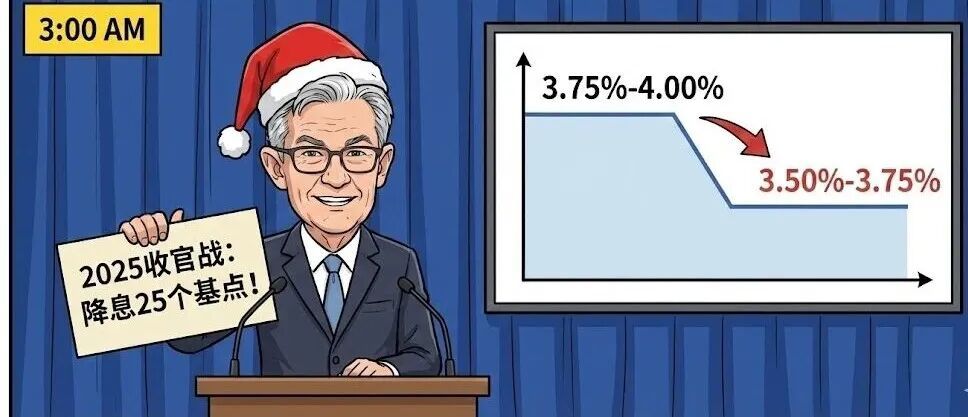 北京时间周四凌晨3点,大洋彼岸的那帮大佬们终于把2025年的最后一场大戏演完了。