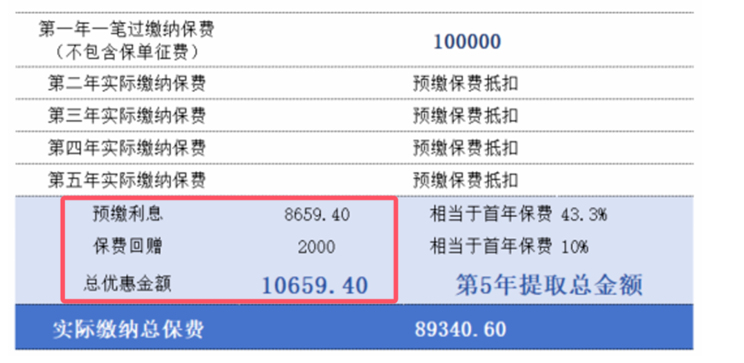 二是,如果我一次性预缴所有保费,还给4.5%的利息。