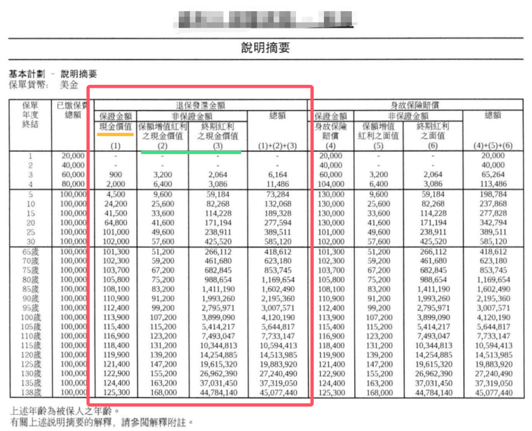 所以现金价值由两部分组成:1)保证收益;2)红利