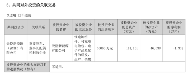 值得注意的是,黑芝麻2022年年报显示,在共同对外投资的关联交易表格中,天臣新能源(深圳)有限公司是共同投资方,该公司与黑芝麻的关联关系为,其是黑芝麻重要股东、董事长配偶控制的企业。而被投资企业是天臣新能源公司,主营锂电池组件、可充电电池包等,净利润亏损1352万元。而2022年10月,黑芝麻以持有的全资子公司江西小黑小蜜食品有限责任公司100%股权作价、不足部分以自有资金补足,合计5亿元对天臣新能源增资。增资完成后,黑芝麻持有天臣新能源59.09%股权。