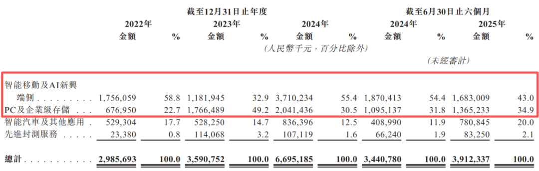收入结构上,智能移动及AI新兴端侧与PC及企业级存储业务为公司主要收入来源。