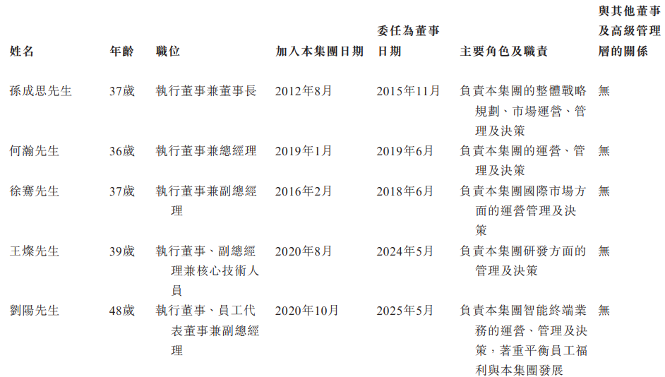 港股招股书显示,公司现任董事会中共有5名执行董事。
