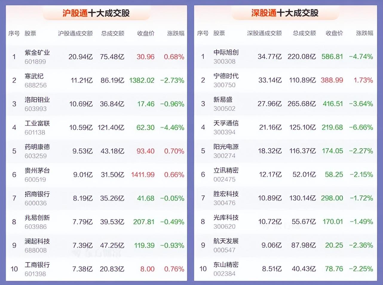 4、北向资金共成交2060.87亿元,占两市总成交额的11.10%——