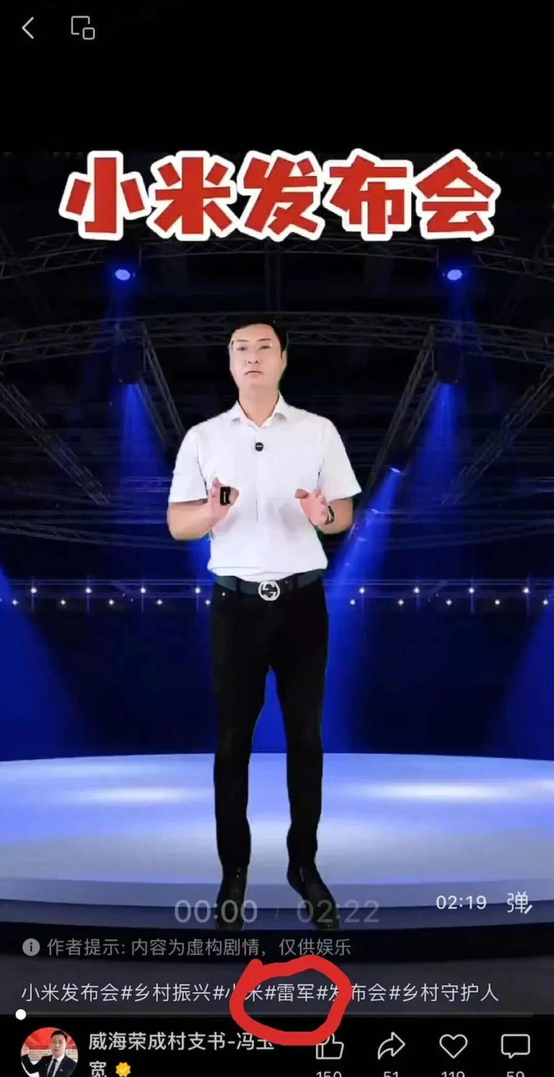 据网传转发的被举报视频显示,冯玉宽直接搞了场“金谷小米发布会”,视频开头明确提及了“假如用雷军方式”介绍小米,视频过程中也一直在模仿雷军的语气和姿态,一口一个“尊贵的品鉴官”“交付只是开始”,把科技圈的营销话术硬套在农产品上。在发布内容时,还特意带了“雷氏营销”话题。