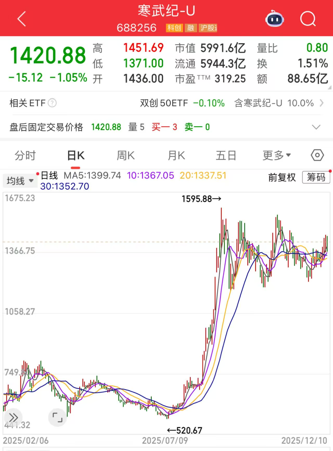 今年以来,茅台稳坐很多年的“股王”席位,几度遭遇寒武纪挑战。