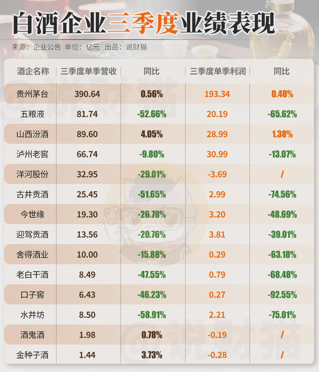 今年第三季度,茅台营收和利润增速都不到1%,几乎全无增长。