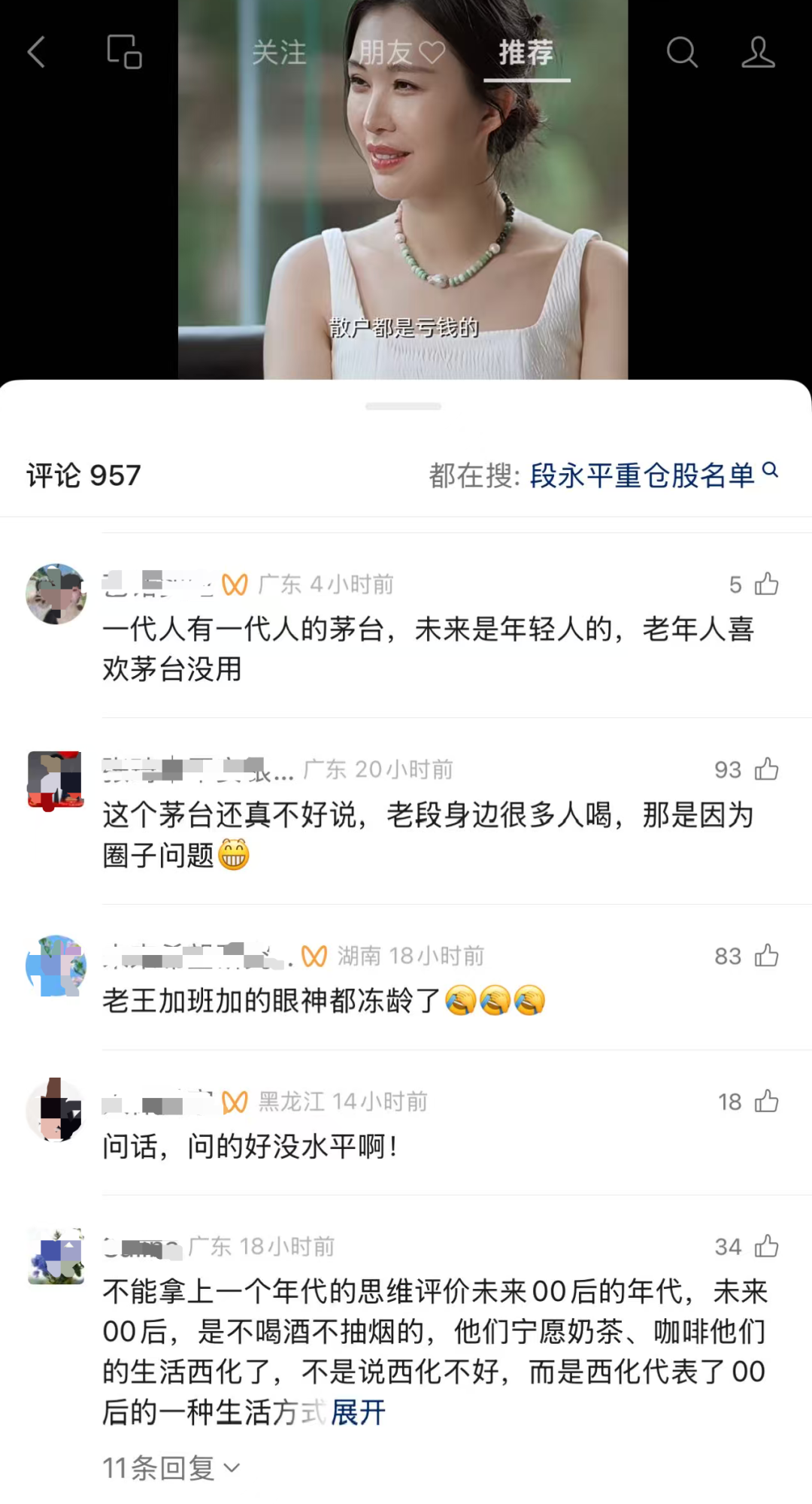 想起前两天,王石和田朴珺采访段永平,段永平提到依然看好茅台。