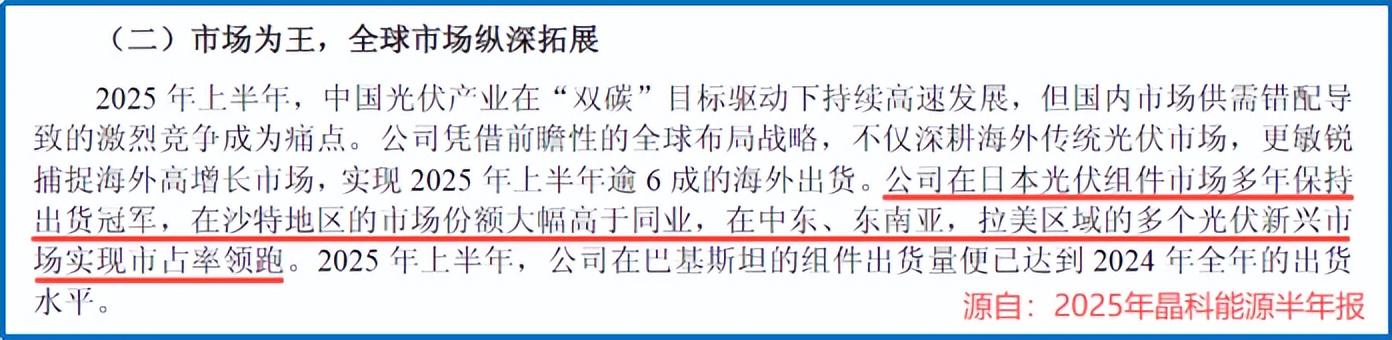 据2025年半年报,其已连续多年稳坐日本市场组件出货的头把交椅,并且在中东、东南亚以及拉美等新兴市场,市场占有率持续领先。