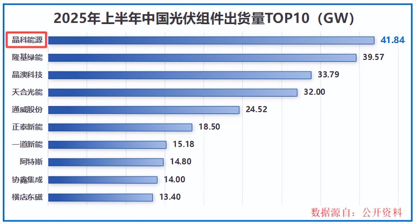 晶科能源也没逃过,尽管2025年上半年其以41.84GW的组件出货量稳居全球第一,但仍旧亏损29.09亿元,同比由盈转亏,形成“出货冠军”与“亏损大户”的矛盾格局。