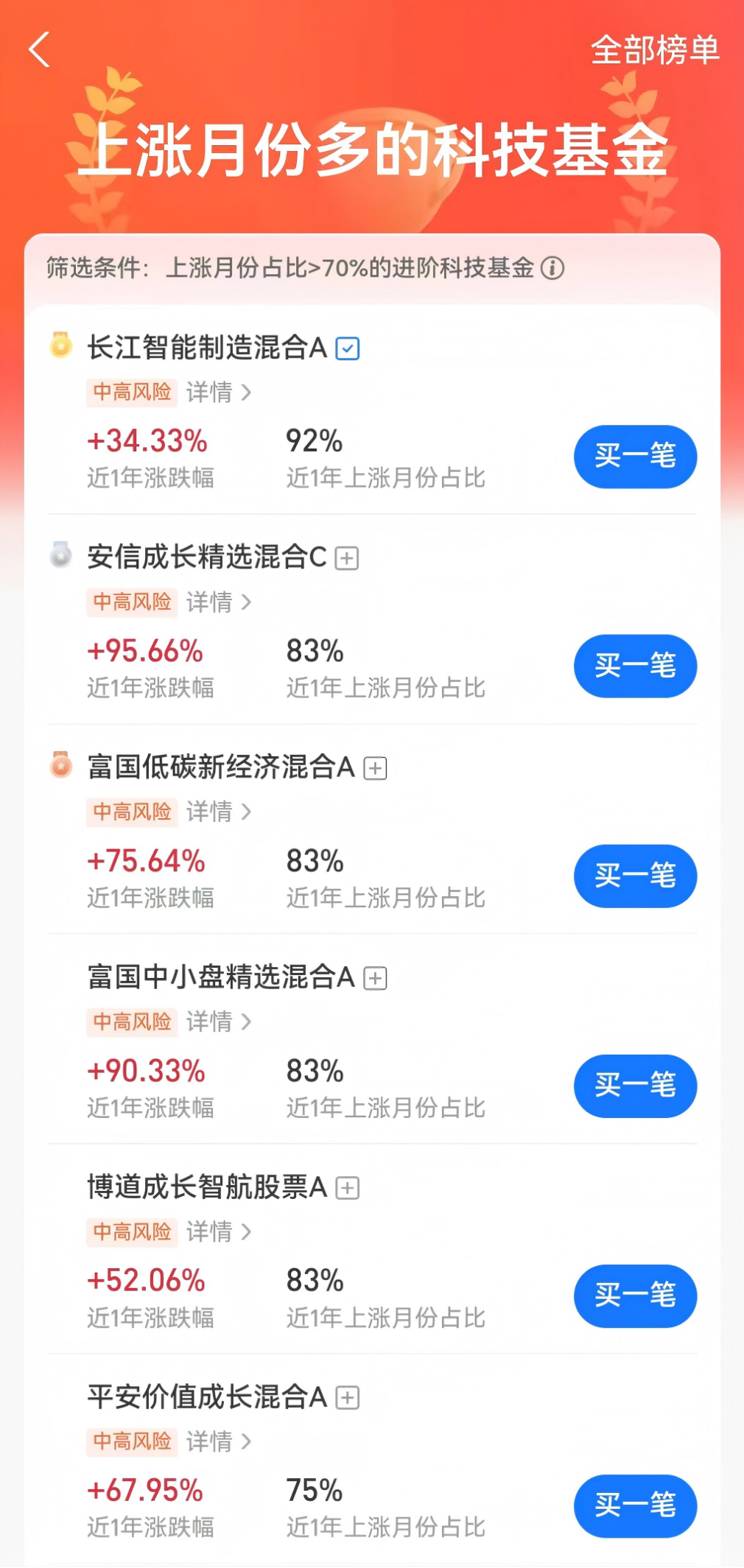 整体看下来,这只基金虽然投资高波动的科技板块,但回撤控制上是可圈可点的。同时,超额收益也有。我们看这只基金还收录在[近1年上涨月份最多的科技基金]这个榜单里。