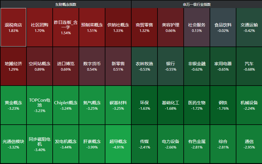 分行业来看,仅商贸零售、美容护理、社会服务三大行业上涨,通信、综合、有色金属、电力设备、传媒等行业领跌。