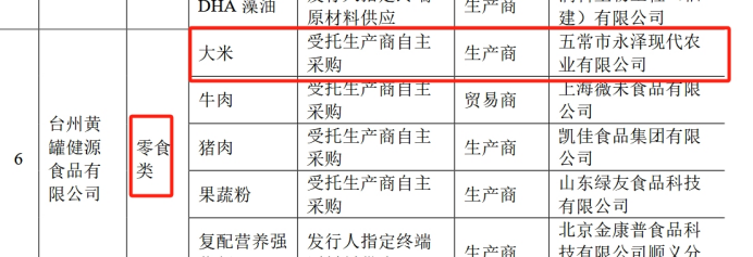 但是回复问询又显示,这家供应商只是台州黄罐健源公司的大米生产商,而台州黄罐健源公司为英氏控股代工的产品品类为零食类。
