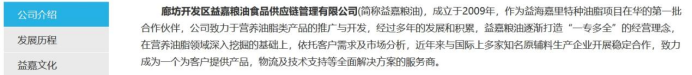 不过在廊坊益嘉粮油的网站上,我们发现该公司的产品展示是这样的:
