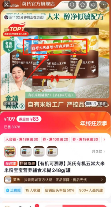 仅在该电商平台,该产品按照不同搭配类型已销售出数十万件。英氏控股要如何向消费者解释“英氏五常大米米粉”广告中出现“自有大米基地”这个概念呢?答案的标准可以有多个,但是唯有诚实赢人心。