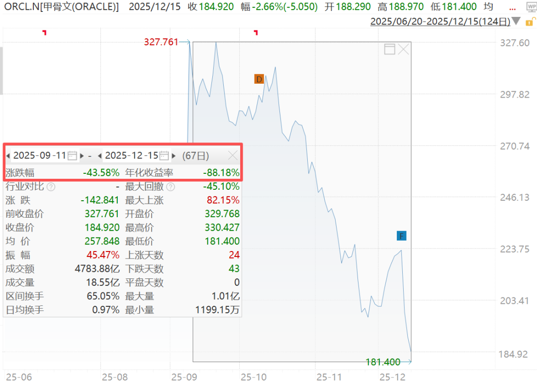 仅仅用67天,美国老牌科技巨头甲骨文(Oracle),就完成了从老板登顶全球首富,到公司股价腰斩的轮回。