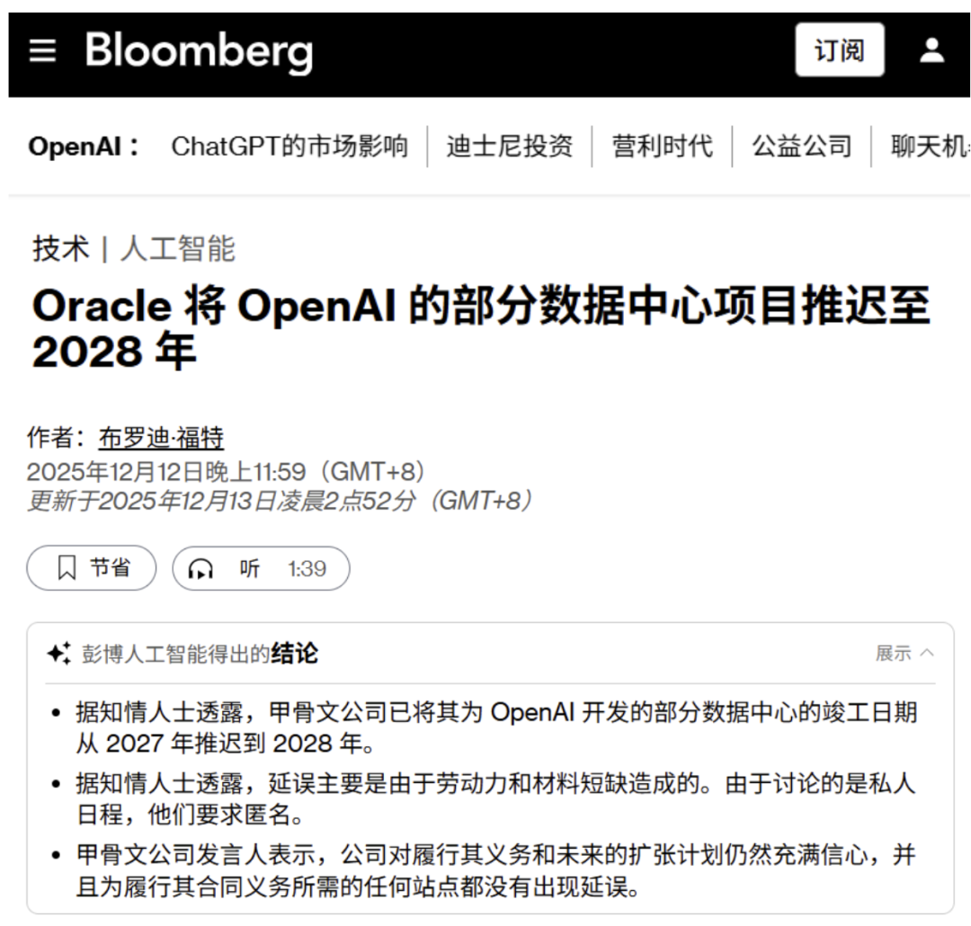 一旦OpenAI增长或需求不及预期,甲骨文砸进去的千亿美金,将沦为坏账。