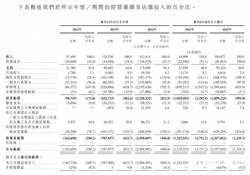 招股书显示,智谱的净亏损由2022年的人民币1.43亿增至2023年的人民币7.88亿,并于2024年进一步增至人民币29.58亿元、2025年上半年为23.57亿元。智谱称,其净亏损呈整体上升趋势,主要系随着业务扩张、扩大研发团队,并从第三方及相关计算硬件采购更多计算服务,导致研发开支大幅增加;以及扩大销售及营销团队,并增加广告投资,以迅速把握新兴市场机遇,导致销售及营销开支增加。
