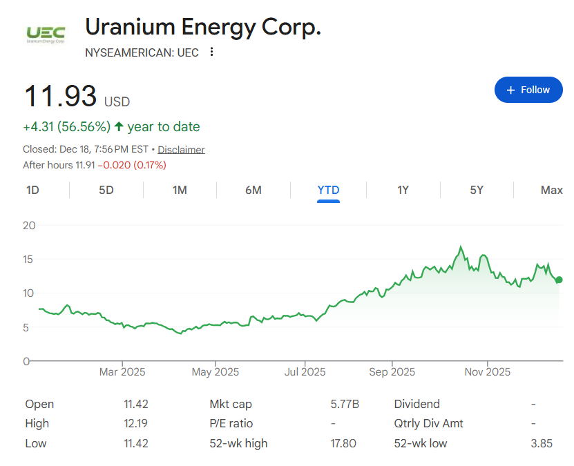 该公司还成立了美国铀精炼转化公司,旨在将自己定位为美国唯一一家拥有铀矿开采、加工和计划中的精炼转化能力的垂直整合公司。