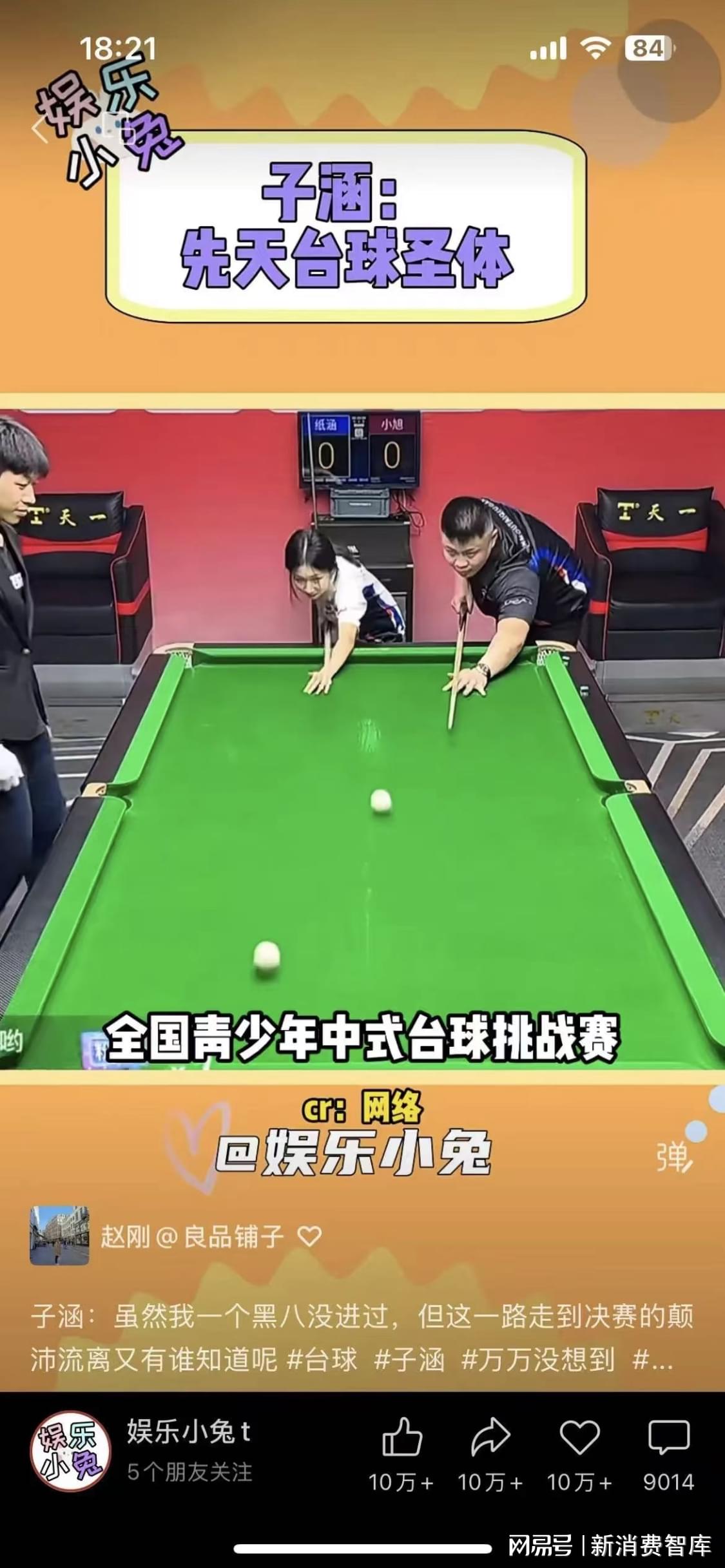 今年夏天,在全国青少年中式台球挑战赛中,一名叫子涵的选手,因为其独特的运气与台球打法,而瞬间被引爆全网,这样引爆了更多新的选手跃跃欲试,深度参与台球娱乐的想法。