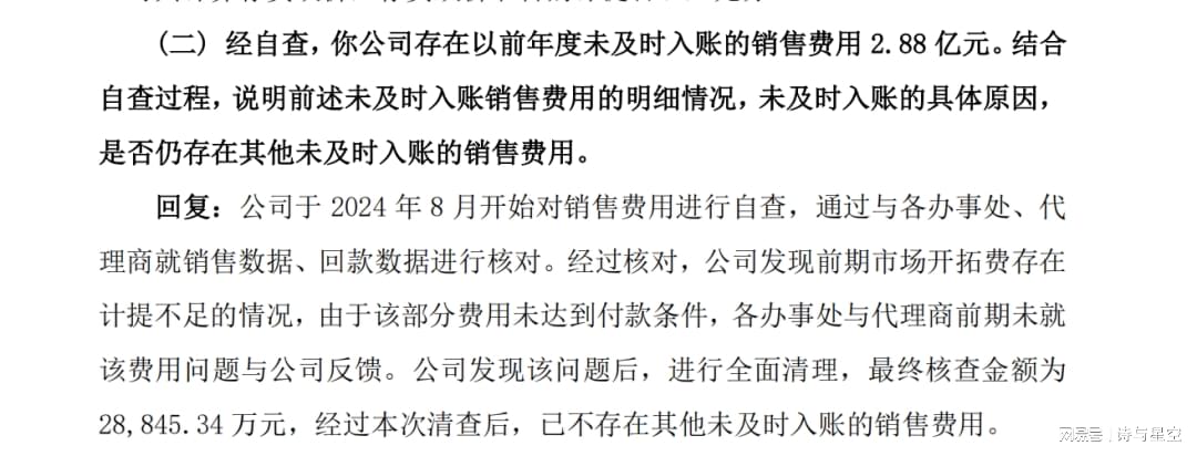 但到了2024年,事务所那里混不过去了,于是出台了一纸公告,称通过自查发现了未及时入账的销售费用。