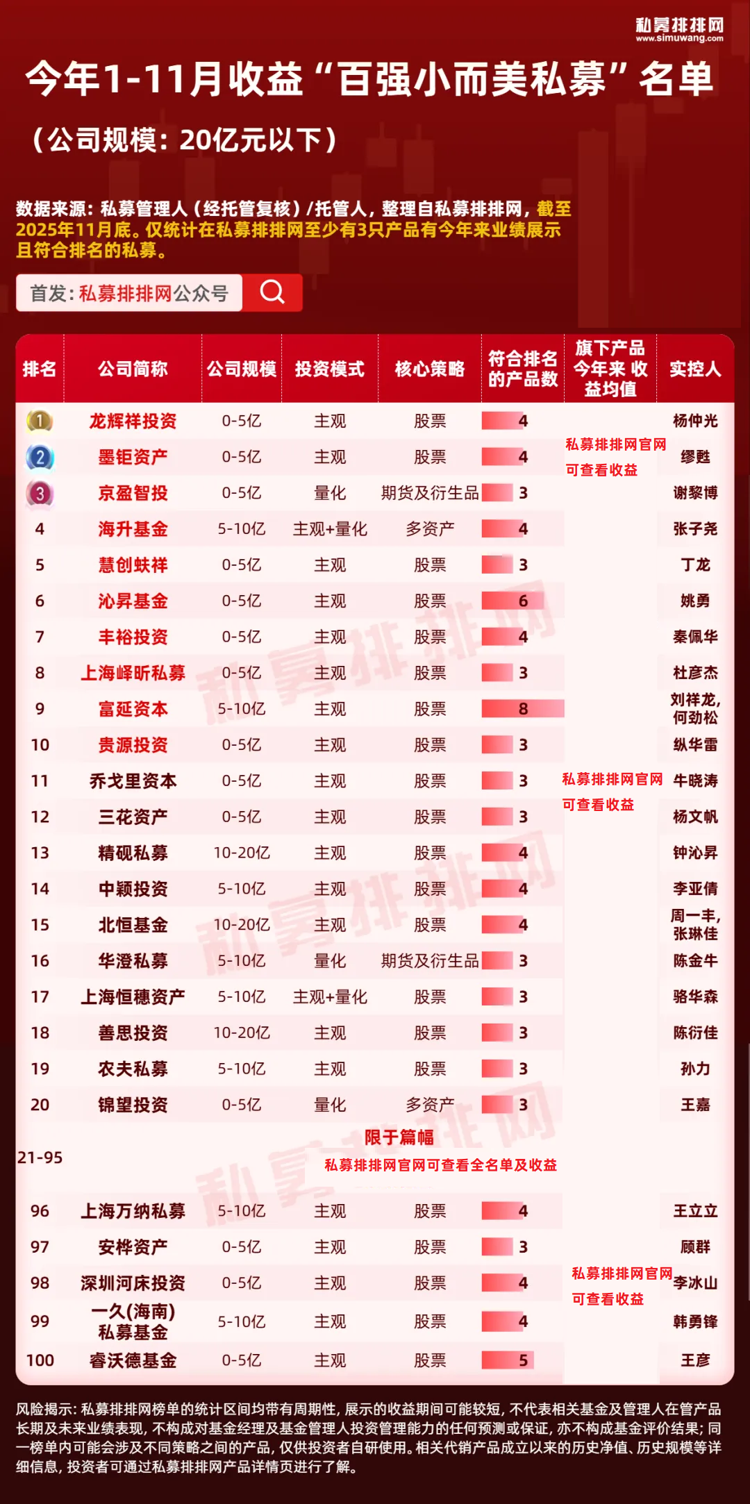 “小而美”百强私募:龙辉祥投资、京盈智投、墨钜资产居前3!