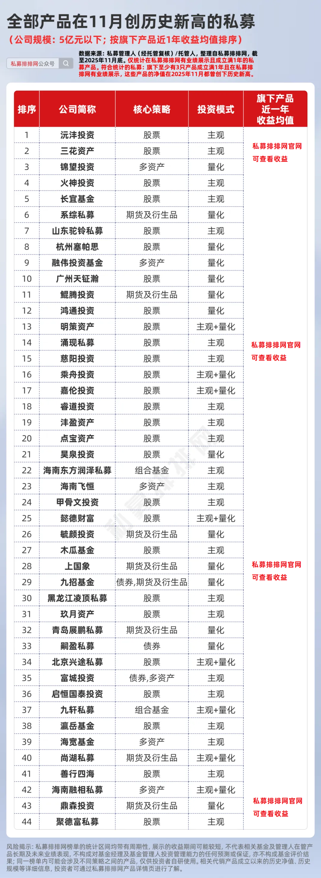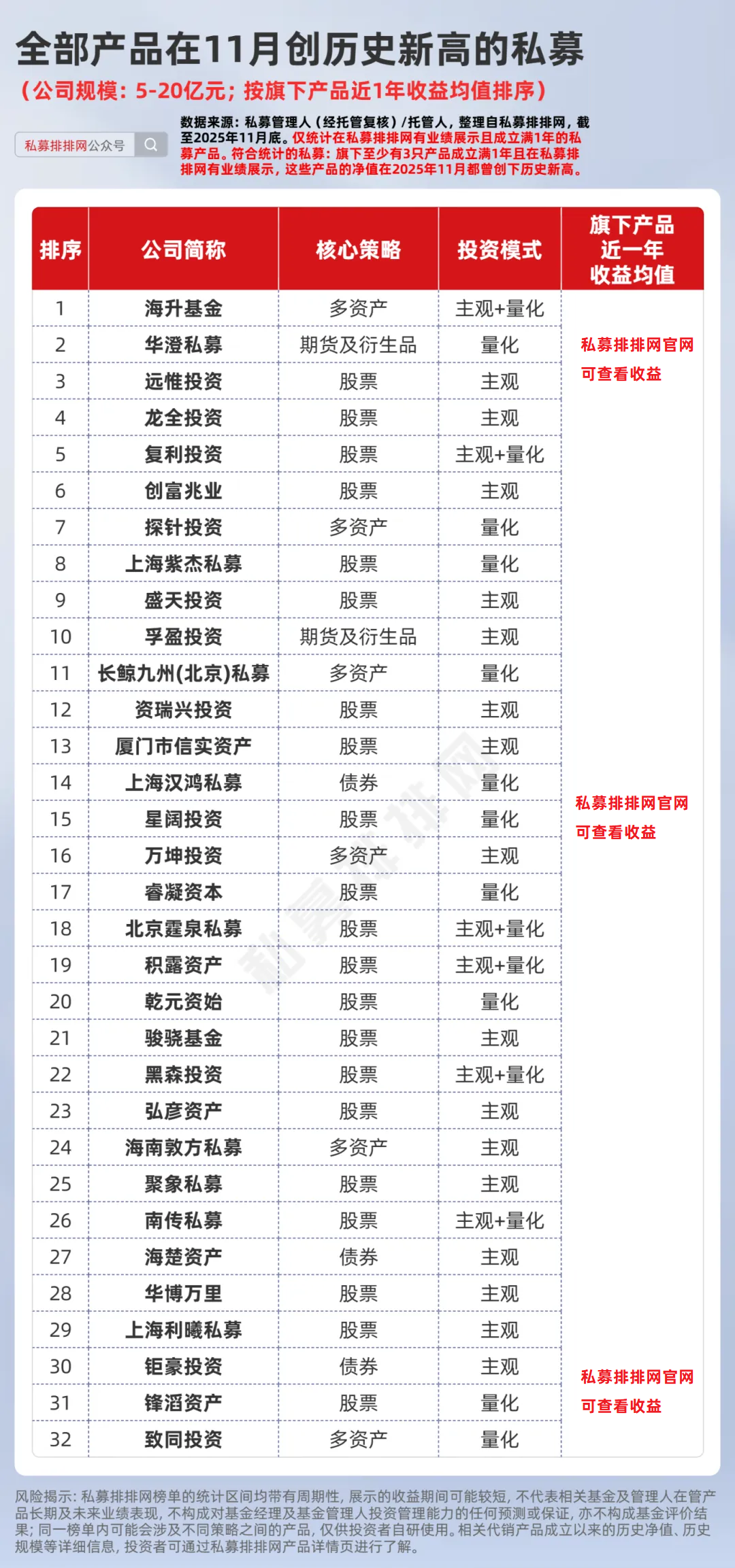 5-20亿规模私募:32家私募全部产品创新高!华澄私募位居第2!
