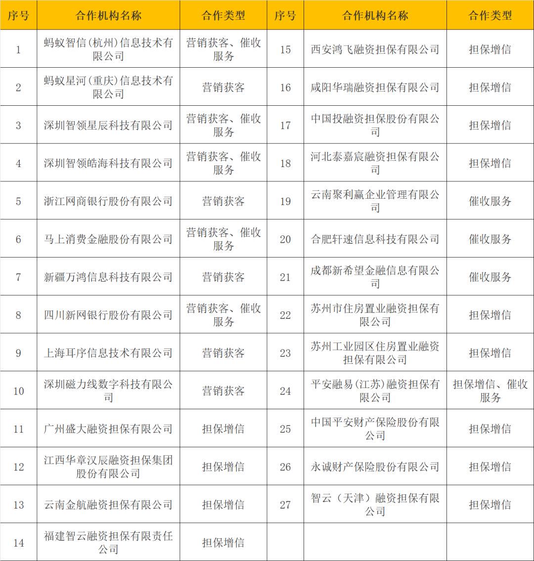 在传统对公业务风险逐渐暴露的同时,苏州银行正马不停蹄地加速零售转型。其官网公示的27家助贷合作机构名单,可谓星光熠熠,涵盖蚂蚁集团、字节跳动等流量巨头平台,以及多家融担公司和催收机构。
