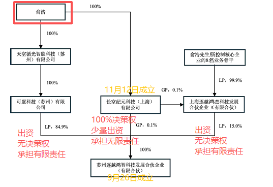俞浩通过GP+LP的方式,对逐越鸿智实现100%控制。