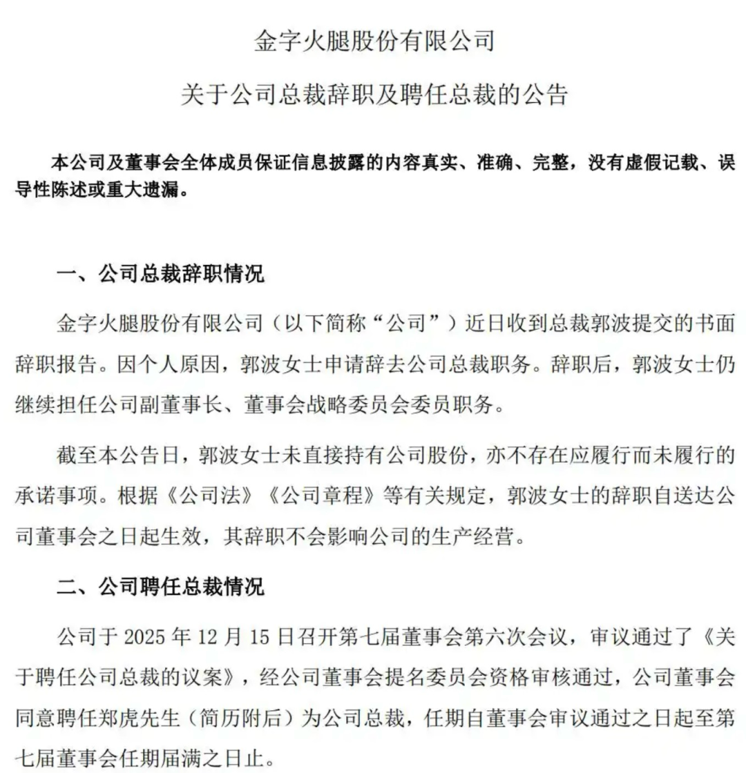 就在前两天,金字火腿宣布“易主”。