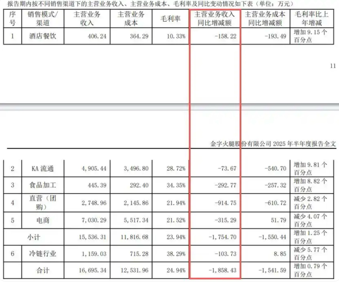 更令人担忧的是,这种下滑是全方位的,无论是面向酒店餐饮的渠道,还是曾被寄予厚望的电商直营,毛利率都在承压。