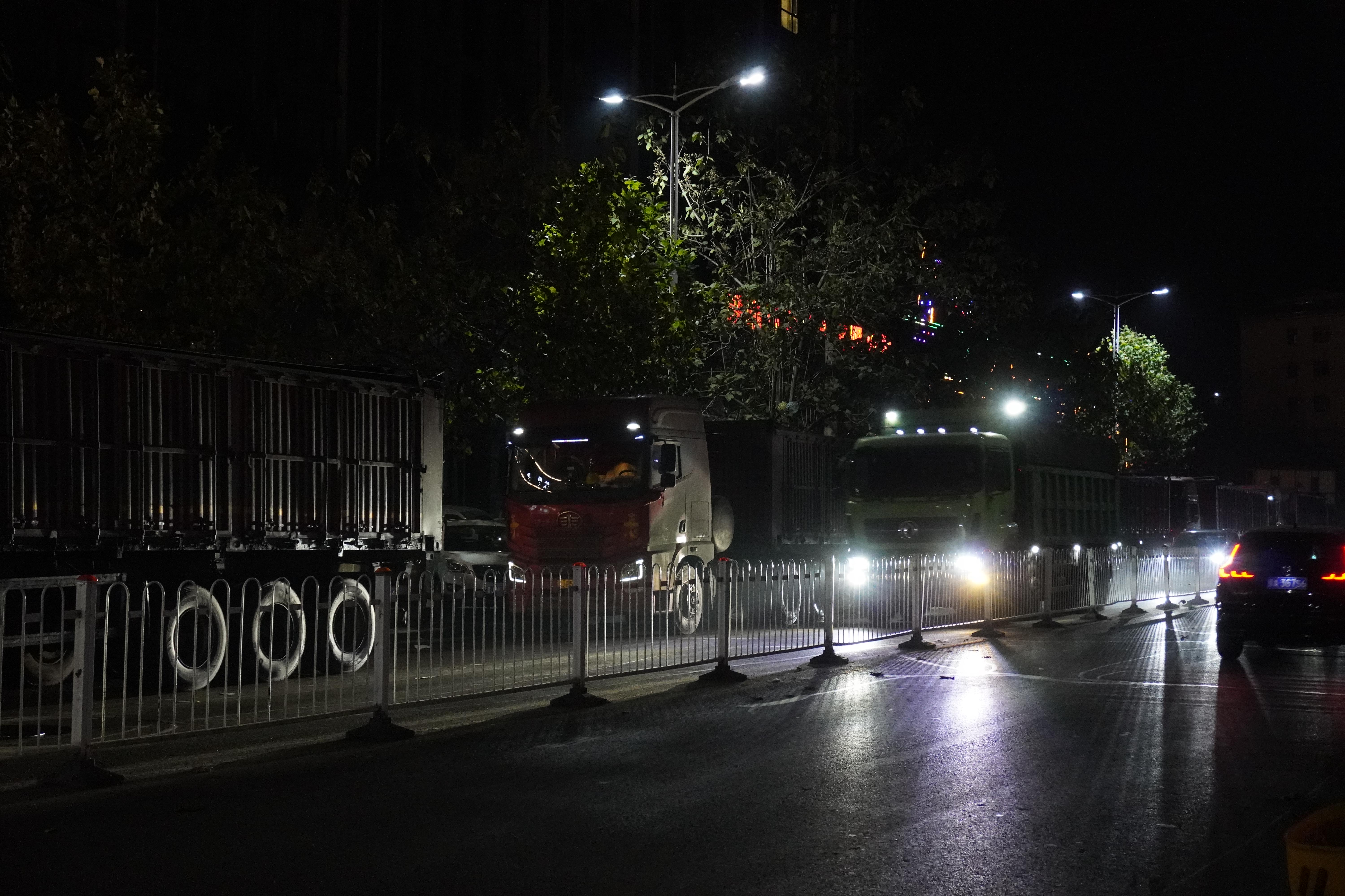 每晚10点之后,县城陷入沉睡,私家车只剩零星几辆,街道成了半挂车的领地。等待出发的停靠在路边,装满货的则以七八十公里的时速呼啸而过,落叶打着旋飞起来,半挂车盖着帆布,仍有细细的煤灰飘下。