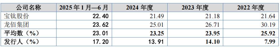 报告期内,金钛股份主营业务毛利率分别为8.36%、14.05%、13.77%和17.05%;报告期内,公司综合毛利率低于同行业可比公司。