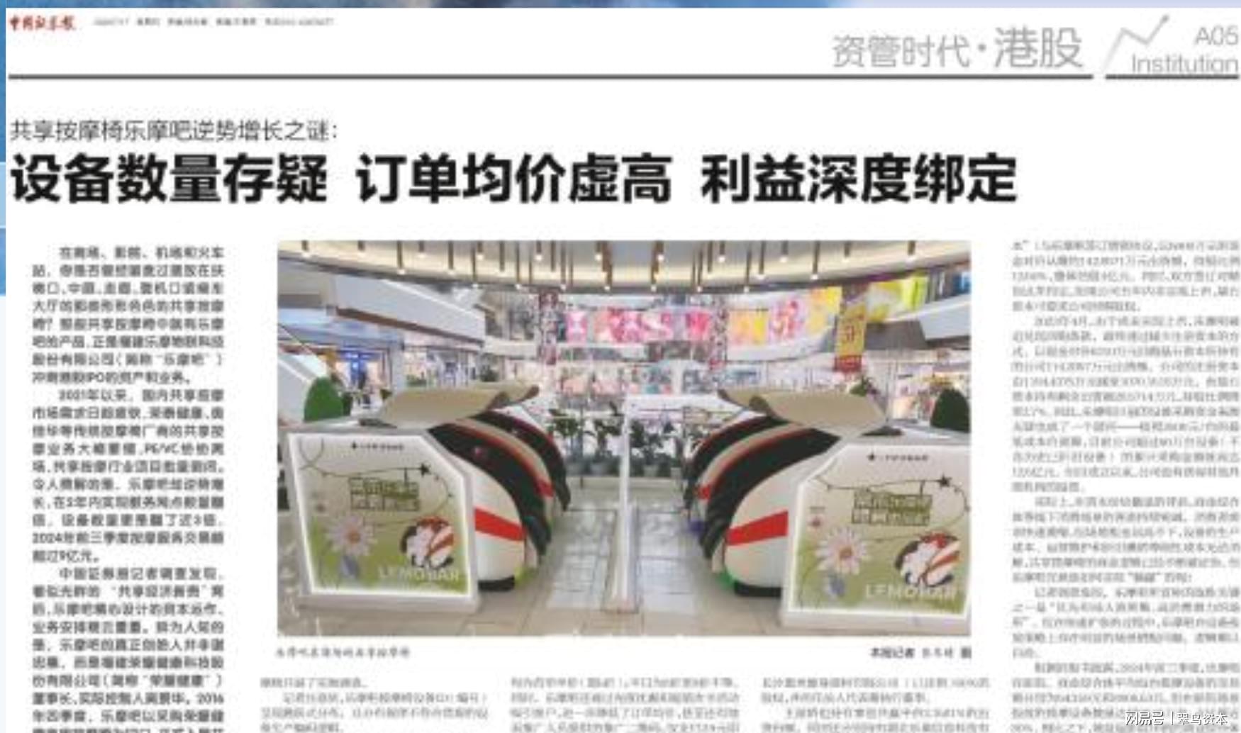 设备数量的真实性争议,更引发市场广泛关注。2025年7月中国证券报的调查显示,乐摩吧按摩椅的设备ID编码呈非常规跳跃分布,不符合常规生产编码逻辑;记者在重庆解放碑某网点发现,7台按摩椅的设备编号尾数差距超19000,此类现象在多个网点普遍存在。以主打产品“元气蛋”系列为例,其理论编号范围对应32519台设备,但记者在全国11座城市实地调查仅发现531台,占比仅1.63%——这一结果,让乐摩科技宣称的设备规模真实性受到质疑。