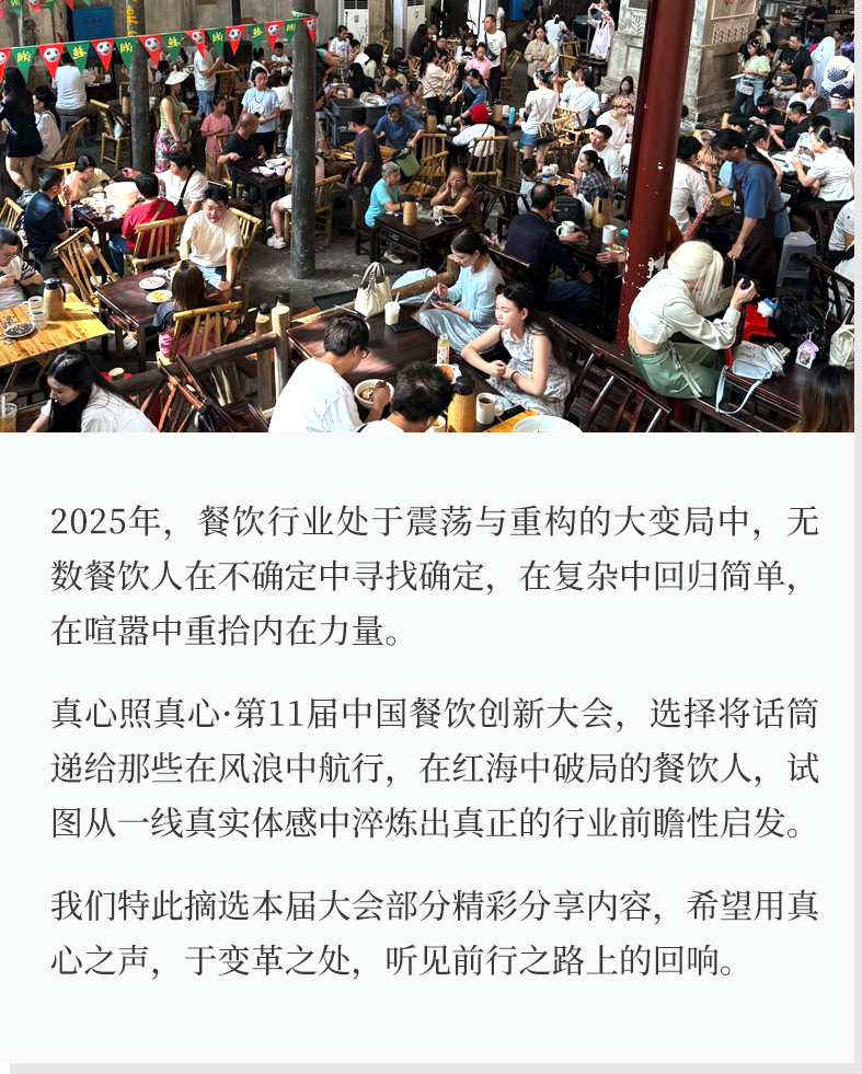 在第11届中国餐饮创新大会的分享里,从餐饮一线从业者,到行业专家,所有人的表达最终都指向同一个原点——真心。